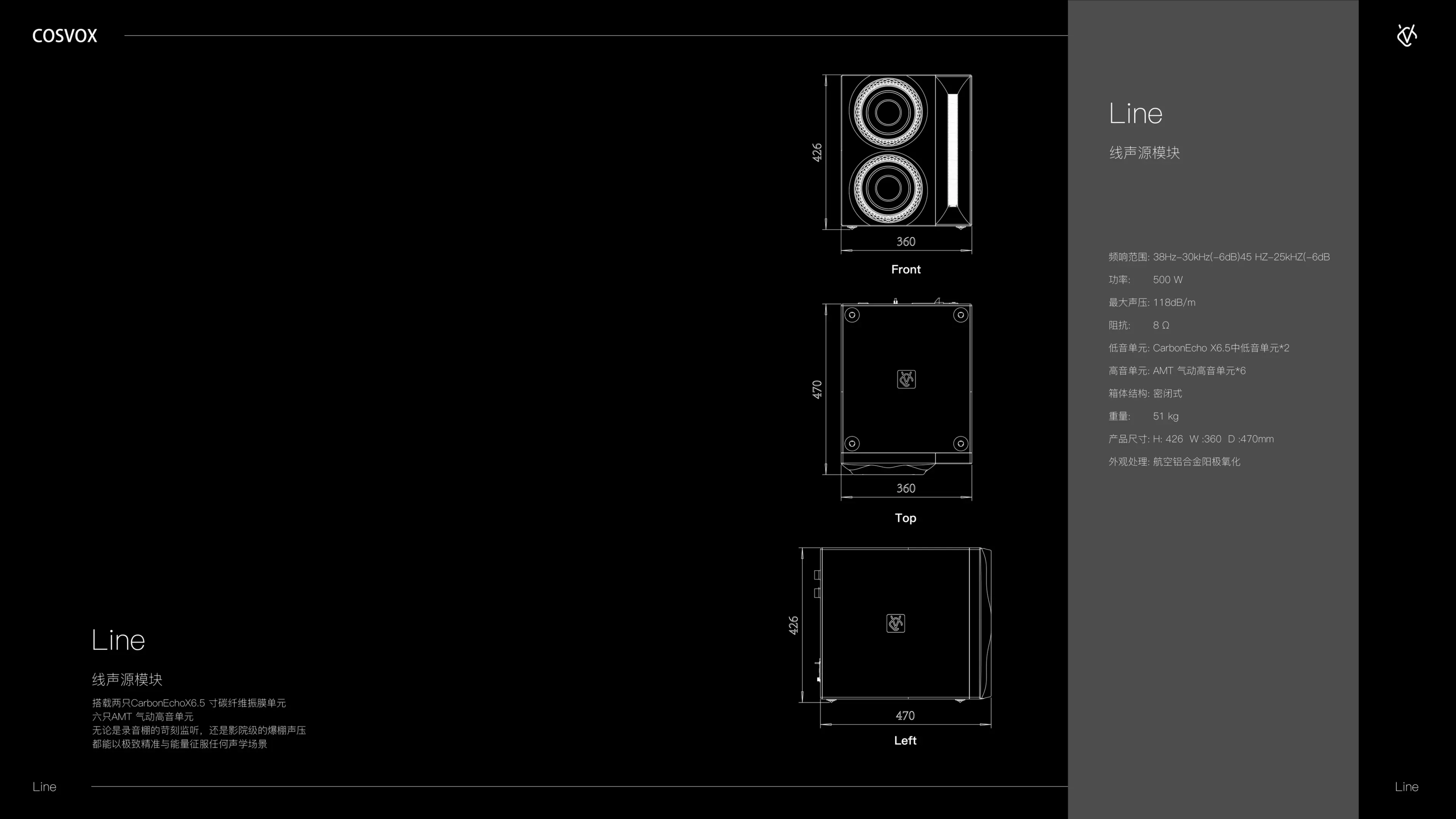 “Line”模块搭载了革命性的6阵列AMT气动高音单元系统,通过六个精心调校的气动单元纵向线性排列,构成了一个物理与声学高度统一的线声源。这一设计完美发挥了AMT单元作为“天生线声源”的结构优势,将单个单元在瞬态响应、细节还原和低失真方面的卓越特性,提升至阵列级的协同新高度。与传统的球顶或环形高音不同,每个AMT单元通过折叠振膜以“挤压”方式高效驱动空气,其辐射面积远超同级传统单元。而六单元构成的阵列,进一步将这种高效驱动能力扩展为一个宽阔、均匀的声学平面。它实现了类似号角的精准能量感与球顶单元的细腻听感,更带来了线阵列独有的优势:垂直方向上的精准控束与水平方向上的广阔均匀扩散。这意味着在更大的聆听空间内,都能获得稳定、一致的高频表现,大幅降低了对“皇帝位”的依赖。